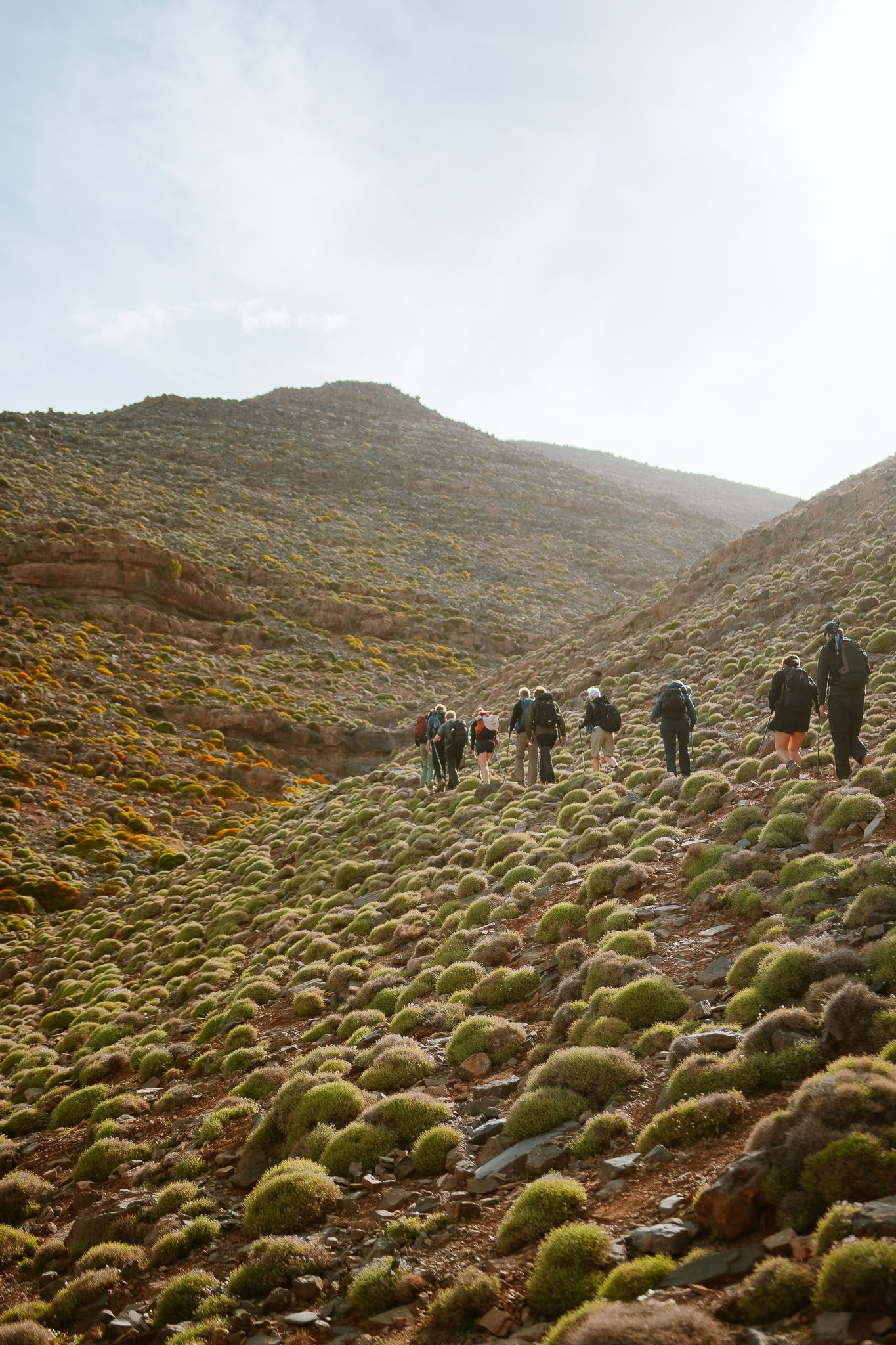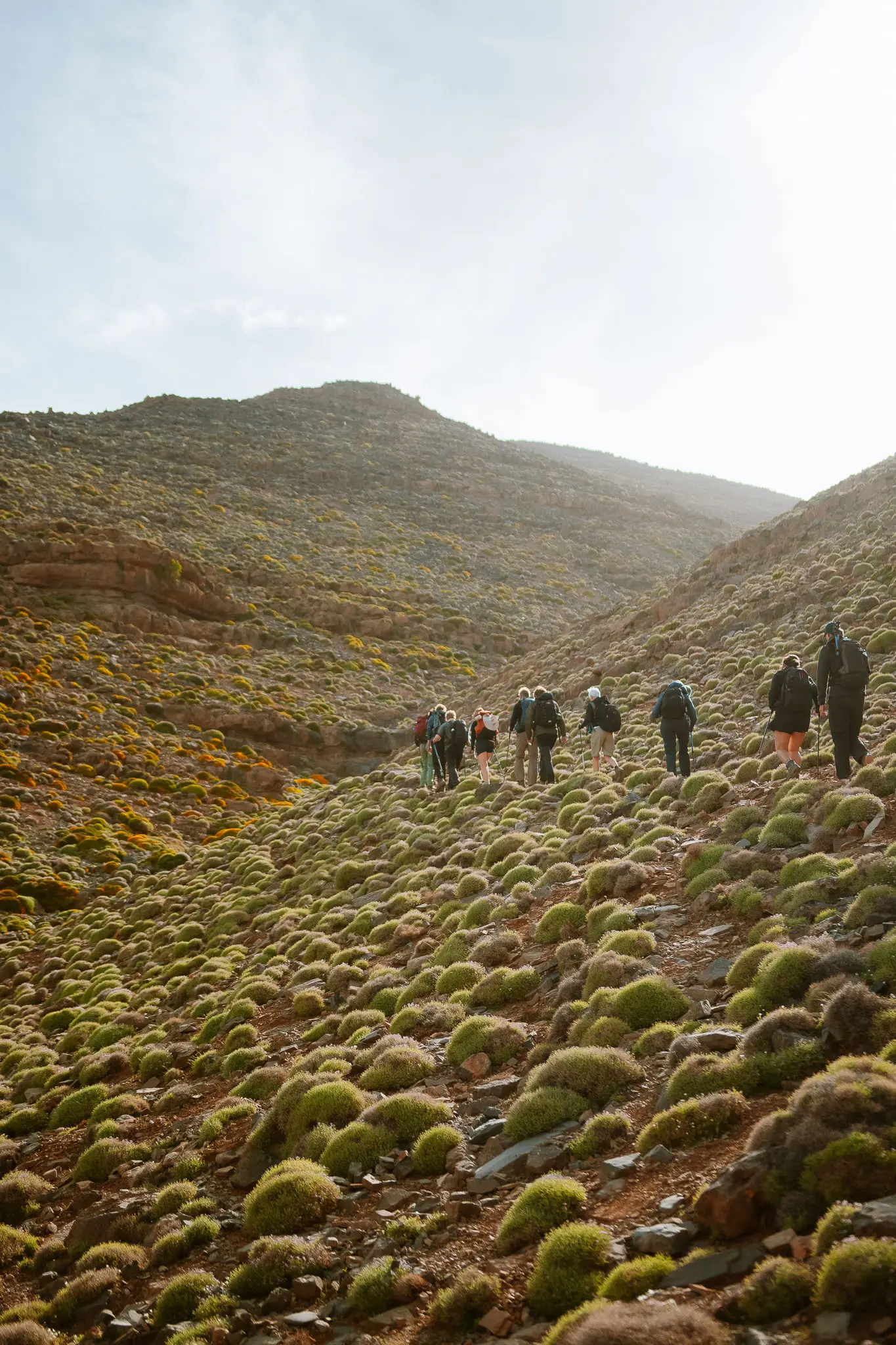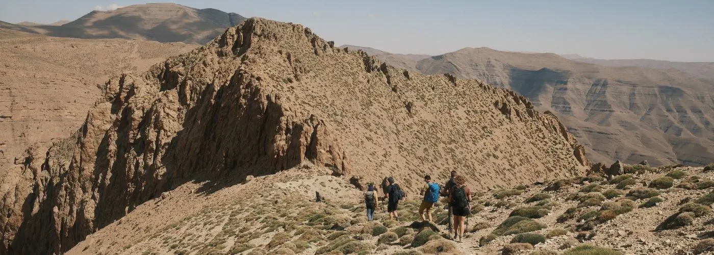 Vooral als je een meerdaagse tocht doet zoals The Atlas Trail, kom je op plekken waar je soms uren geen andere wandelaars tegenkomt. Geen file op de top. Geen wachtrij voor het perfecte Instagram-shot. Gewoon jij, je groep, en de bergen.